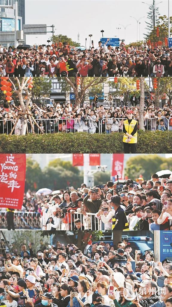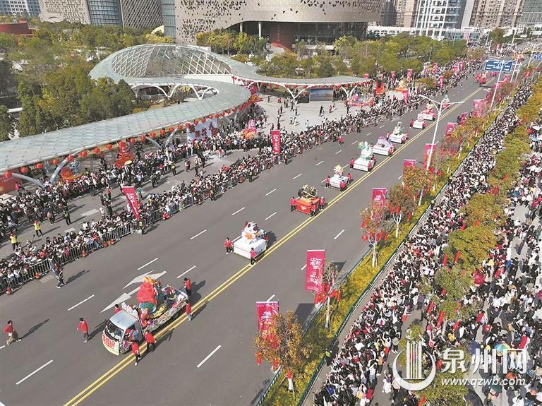 用文艺点亮美好生活——锣鼓喧天、万人空巷,蜂拥而至的超30万游客与市民点燃现场火热氛围,把泉州的年味拉满。道路中央,演职人员倾情演绎;道路两旁,观看者如痴如醉。踩街队伍所到之处,鼓掌声、欢呼声连连,人们沉浸式感受非遗文化饕餮大餐,在热闹喜庆中,“踩”出新年味,“踩”出好兆头,“踩”出新风尚。