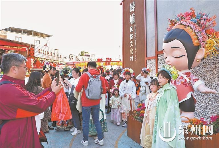 众多市民游客来到蟳埔打卡簪花围