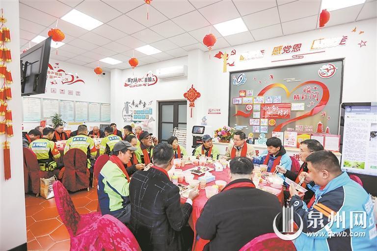 据了解,自2017年以来,每年春节前夕,泉州各级工会都会通过组织“团圆饭”、派送“年夜饭”等方式慰问节日期间坚守岗位的各行业劳动者,用服务传递真情,用关爱增添暖度。今年,全市各级工会采取配送到岗、围桌团聚等形式,为因除夕夜坚守岗位不能回家吃团圆饭的交警、环卫、公交、物业保安保洁、出租车司机等一线职工安排年夜饭,仅市总工会就为市直相关职工群体安排年夜饭400多份。