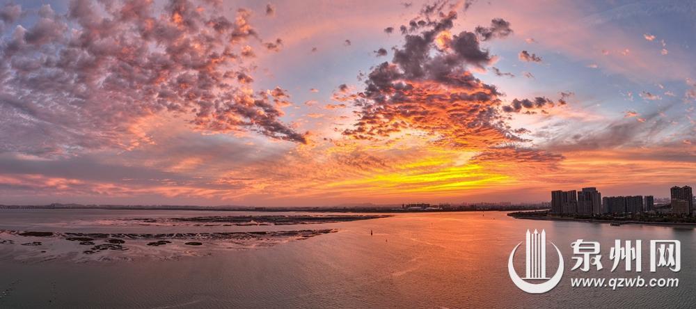2月19日,火红的晚霞刷屏了泉州人的朋友圈,美丽的景色绚烂壮观!傍晚,远眺天际,晚霞落日光影交织,天空中云彩与蓝天层次越加分明。在落日余晖的映衬下,成片云彩如同燃烧起的火焰一般,渐渐染红天边,壮美至极、震撼人心!(林劲峰 摄)
