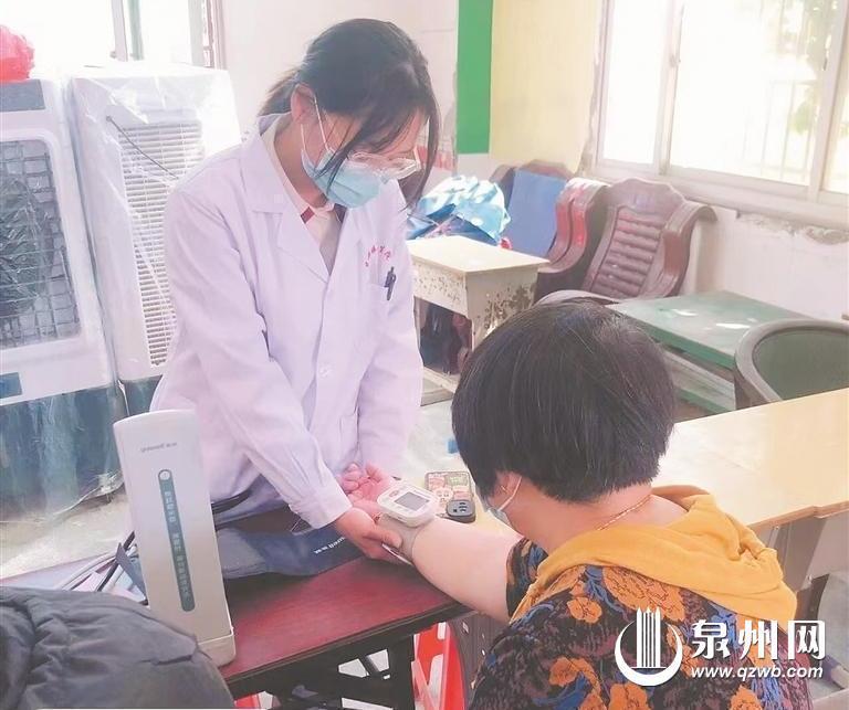 在晋江英林镇马山小学,黄晓婷在为村民义诊。