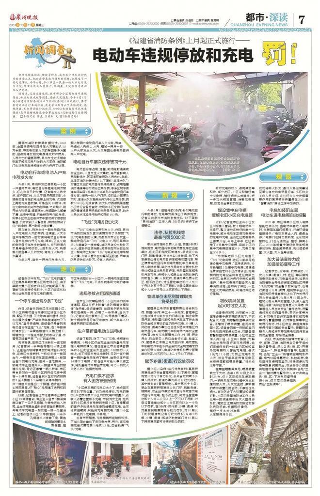 《泉州晚报》长期关注电动车充电安全问题