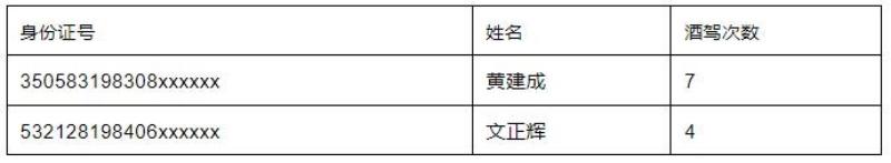 醉酒驾驶血液酒精含量280mg/100ml以上的驾驶人名单