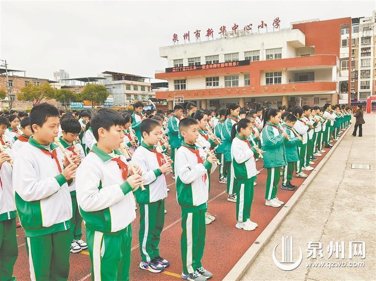 在泉州市新华中心小学的开学典礼上,三至六年级的上千名同学齐聚操场,共同演绎竖笛版《我和我的祖国》和《龙的传人》,笛声悠扬,旋律优美,孩子们在音乐声中开启新学期,也让沉寂已久的校园重新恢复了激情与活力。