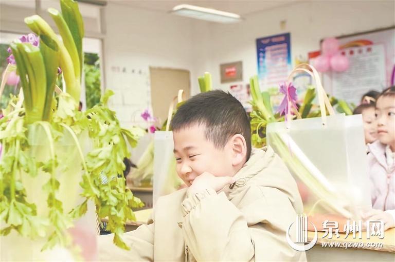 回到班级后,老师还为同学们精心准备了各式各样的见面礼。二年(1)班的朱老师将装有不同蔬菜的手提袋送给每位同学,“娃娃菜代表与娃同行,大葱寓意聪明伶俐,芹菜象征勤学多才,番茄表示一帆风顺,希望孩子们新的一年里都能红红火火。”而在六年(2)班,班委郑弘煜和张晗琪为同学们设计了“幸运转盘”游戏,记者看到,在转盘上有唱一首歌、拥抱老师、拥抱同学等多种选项。“我最喜欢的是‘抱一抱老师’和‘抱一抱同学’选项,我们距离毕业只有四个月了,希望通过拥抱增进友谊,拉近与老师的距离,留下美好的回忆。”郑弘煜同学说。