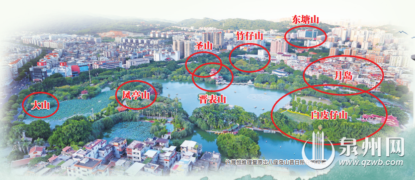 老泉州人大抵知道,位于市区温陵路东侧的泉州东湖,古有“七星伴月”的说法。“七星伴月”指的是湖中有七座小岛围绕一座大岛,形如七颗星星与一轮满月。历史长河奔流,东湖上部分岛山已无处寻觅。那么,八座岛山今安在?它们在东湖又是如何排列?
