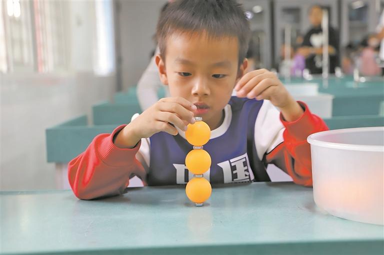 泉州市晋光小学向来重视科技创新工作,将科学教育理念贯穿在教育教学的全环节,引领学校科学办学、教师科学施教,培养学生的科学素养,探索出 “133”科技教育模式。据悉,该校已经连续举办了16届校园科技节系列活动,其中个人36项、团体赛6项、亲子赛3项。每年科技系列活动形式多样,内容丰富,既有挑战稳定性的乒乓球叠高、考验耐心的双轨怪坡,还有测试准度的纸筒射箭、需要手速的竞技叠杯以及考验团队协作能力的“吸球”接力赛、“珠行万里”接力赛等。