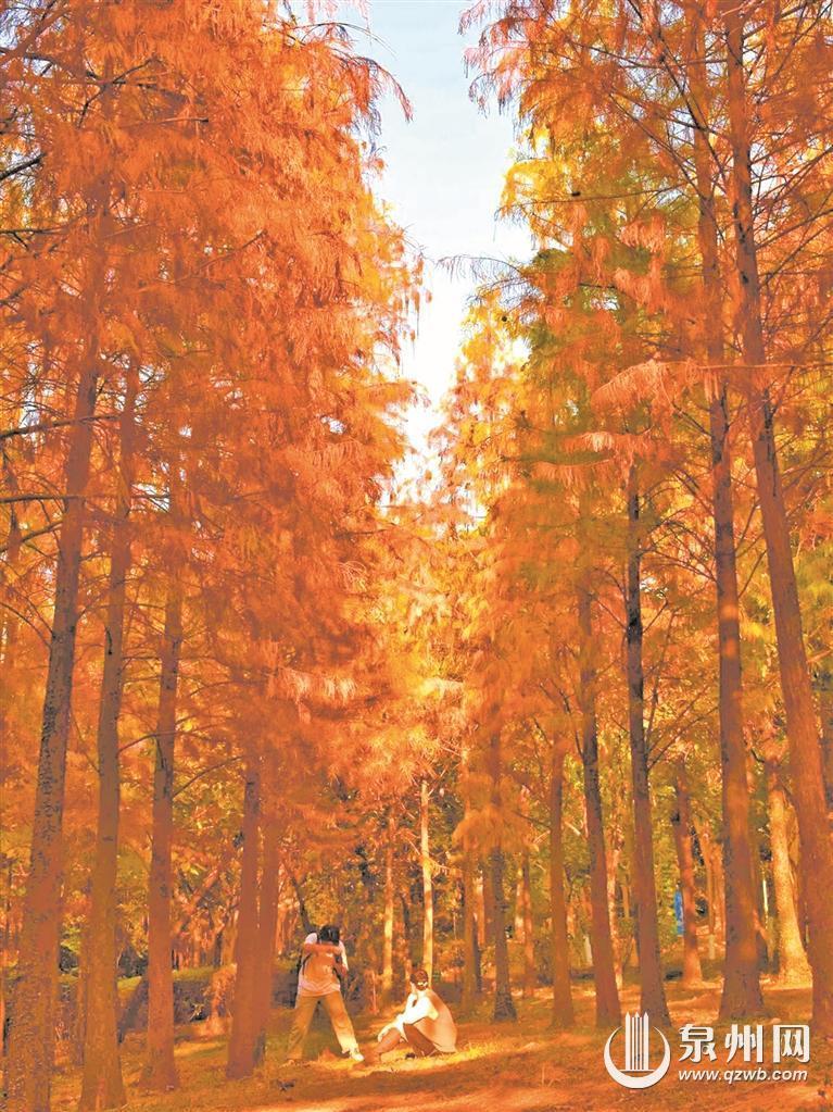 “说是泉州小洱海不为过吧。”今年1月,在晋江晋阳湖,跟着朋友来此的湖北游客刘乔被眼前的景色吸引了,她描述道:“湛蓝的湖水、火红的水杉、青绿的草坪,阳光洒在水面,鸟群落在旁边,湖边赏景,微风拂面,很是舒服。”去云南大理苍山洱海赏过落羽杉的她说:“泉州的落羽杉,很值得看。”