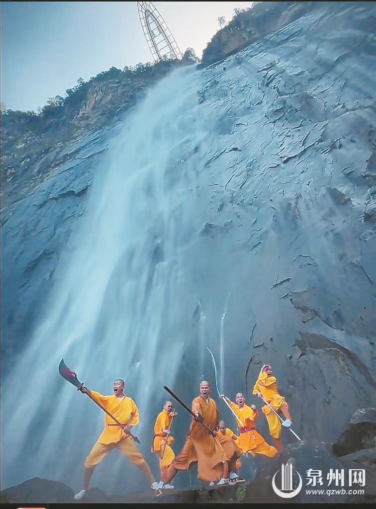在德化岱仙瀑布下,武僧们身姿如行云流水,拳法刚劲有力,与自然景观融为一体,令人叹为观止。3月10日是金庸诞辰100周年纪念日,泉州南少林理刚师父带领少林寺武僧,在德化石牛山下演绎五祖拳的传奇,以此纪念这位武侠小说界的巨擘。现场观众表示,这是一场难得的传统武术盛宴,“泉南处处少林风”名不虚传。