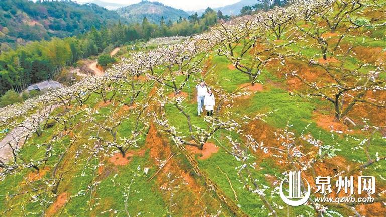 德化县龙浔镇高阳村,100多亩的芙蓉李花迎着春风竞相开放。 (受访者 供图)