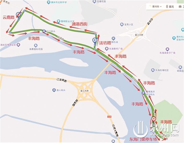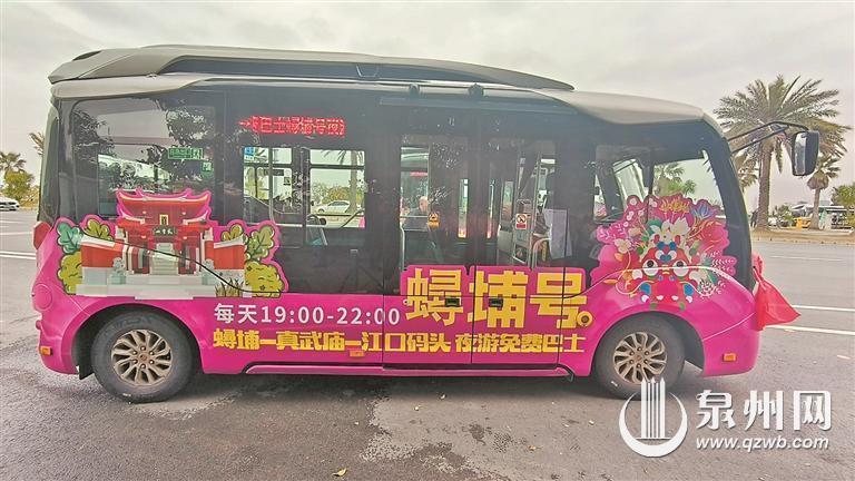 泉州公交集团相关负责人介绍,“蟳埔号夜游巴士”采用夜间微公交循环运行模式,运行时间为19点至22点,由东海门第停车场出发,途经丰海路、法坊路、通港西街、云鹿路等路段,连接蟳埔、真武庙和江口码头,市民、游客可免费乘坐,观赏蟳埔一带夜间美景。