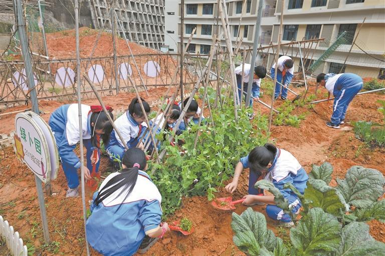 该校校长郑志清介绍,种植实践活动引导同学们走出教室,走进自然,也让同学们丰富知识,锻炼身体,提高了劳动技能,培养了吃苦耐劳的品质。“绿芽”劳动园地不仅激发学生的劳动兴趣,培养学生的劳动实践能力,也提升学生的核心素养,实现劳动润心、实践育人的目标。