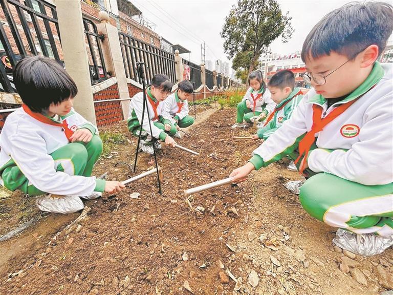 阳春三月,为丰富同学们的劳动课堂,鼓励同学们与大自然“对话”,泉州市部分小学开展了蔬菜种植活动,融合校内外教育,让劳动变得有趣、有料、有价值。