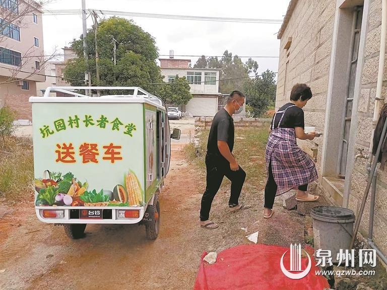 上午9点多,在晋江市东石镇坑园村长者食堂的厨房内,工作人员忙碌着准备当天的午饭。在厨师做好所有菜品后,大家便开始着手打包、装车,为村里的老人提供送餐上门服务。