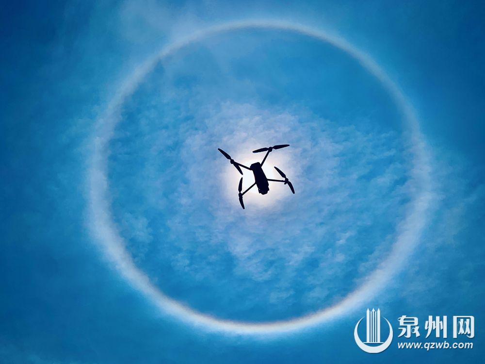 3月29日上午11时许开始,泉州市区上空肉眼可见日晕天象,一直到正午12时依然持续。(融媒体记者潘登 摄)