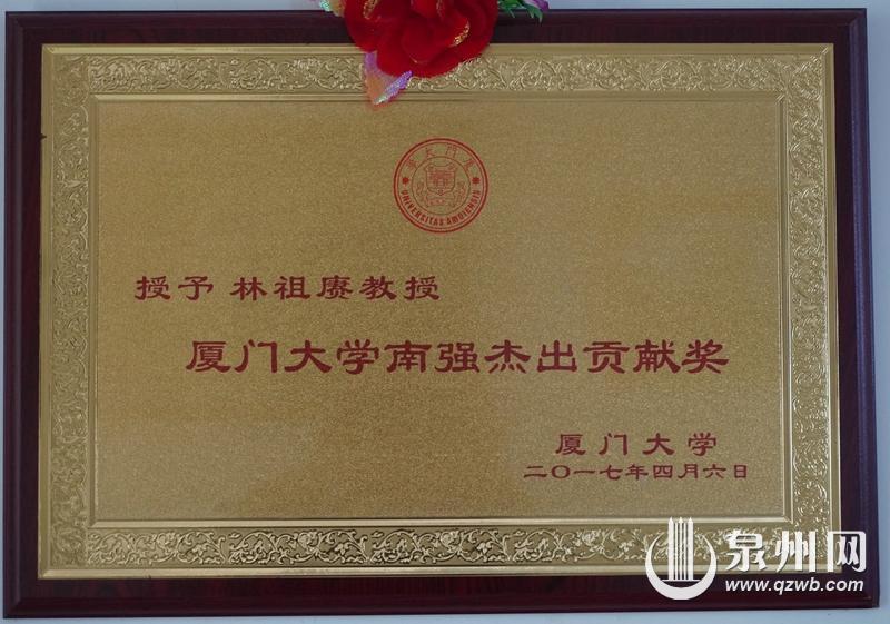 2017年,厦大为林祖赓教授颁发的厦门大学最高荣誉奖——“南强杰出贡献奖“。