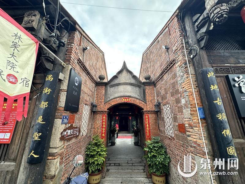 林祖赓介绍,林家大厝的大门看起来较窄,其实以前两侧有七八间房全是林家的,西街自古属于泉州繁盛之地,寸土寸金,林家便将两侧作为商铺,中间留一道私宅大门。林家大厝是闽南传统民居风格,但大门的束腰尖拱状牌额,左右配以尖顶环形小柱,有着伊斯兰建筑的风格,这是泉州自古以来的中外交流痕迹,也说明建造时运用了当时最流行的建筑语言。
