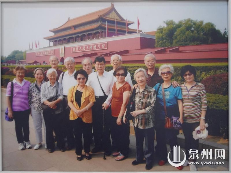 2017年,林家8个兄弟姐妹和家属在天安门前合影。前排为林家姐妹和妯娌,后排左二是林祖赓,左四是林祖乙。(林祖赓/供图)