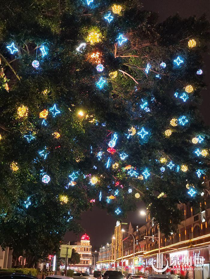 一树“繁花” 泉州中心市区庄府巷大榕树上彩灯如“繁花”,让古城春日夜景更加璀璨迷人。(陈英杰 摄)