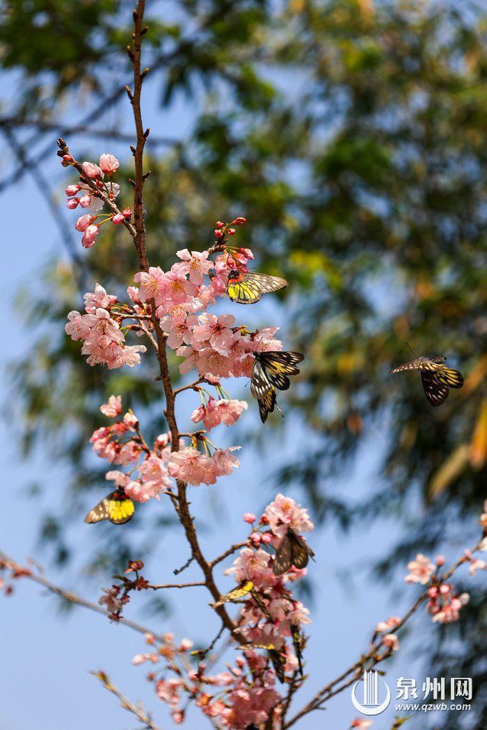 留连戏蝶时时舞 春花绽放,一只只蝴蝶飞舞于花间流连忘返。(刘书婕 摄)