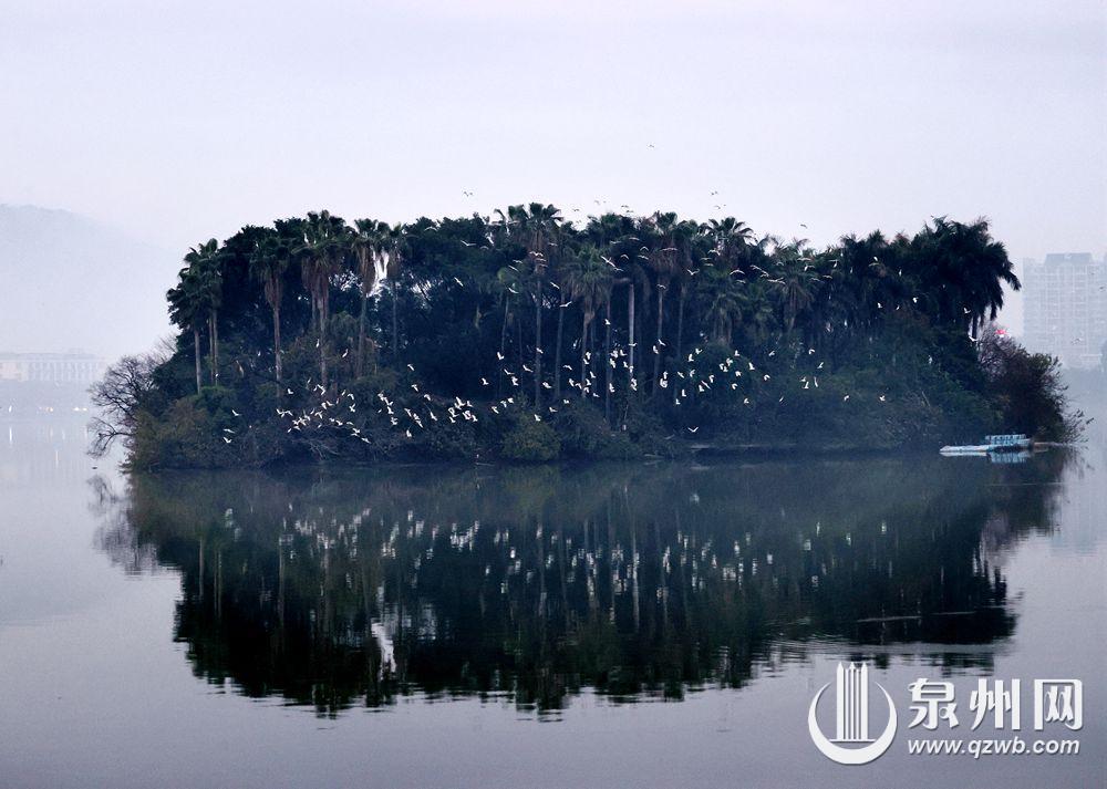 草长平湖白鹭飞 雨后的泉州西湖更加迷人,白鹭纷飞演绎了生机勃勃的春日景象。(王柏峰 摄)