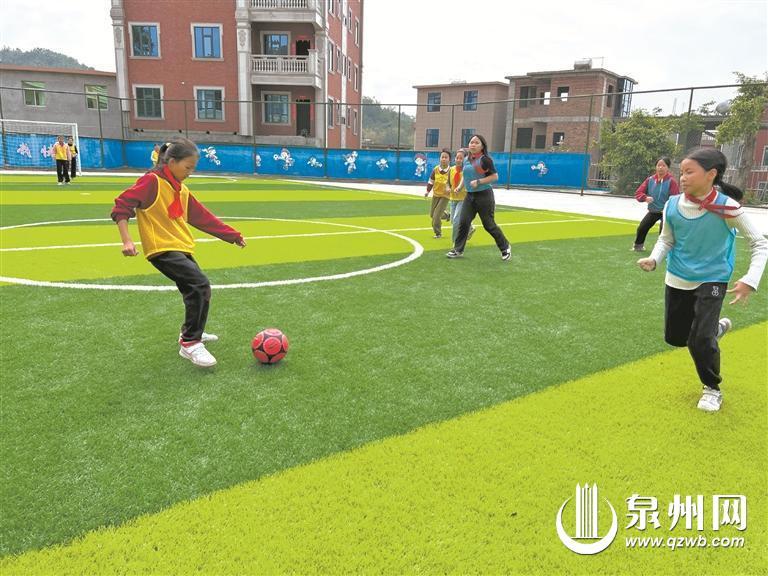 泉州网4月15日讯(融媒体记者 陈灵 通讯员 洪清竹 刘超婷 文/图)带球、过人、射门……近日,又到了学校女子足球队的训练时间,南安市丰溪小学五年级的戴小语和队友们来到崭新的五人制足球场上开始训练,只见她们灵动敏捷,犹如一群在绿茵场上跳跃奔跑的小鹿。而在前不久,她们脚下仍是沙土地,一到雨天就坑坑洼洼。