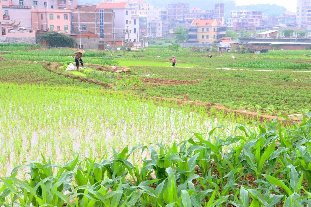 稻苗青青,碧水绕田。近日,洛江区马甲镇新民村的农田里,一片忙碌。农民紧抓农时,进行水稻、玉米田间除草、施肥、喷药作业,放眼望去,百亩粮田长势喜人,生机勃勃。
