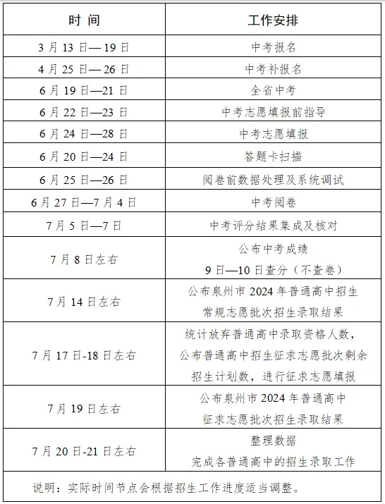 30.2024年泉州市中考中招工作时间如何安排?