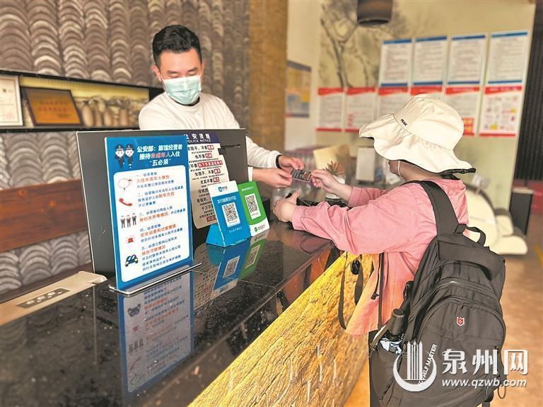 备案后的民宿必须安装旅游业(民宿)治安管理信息系统。图为游客正在办理入住登记。