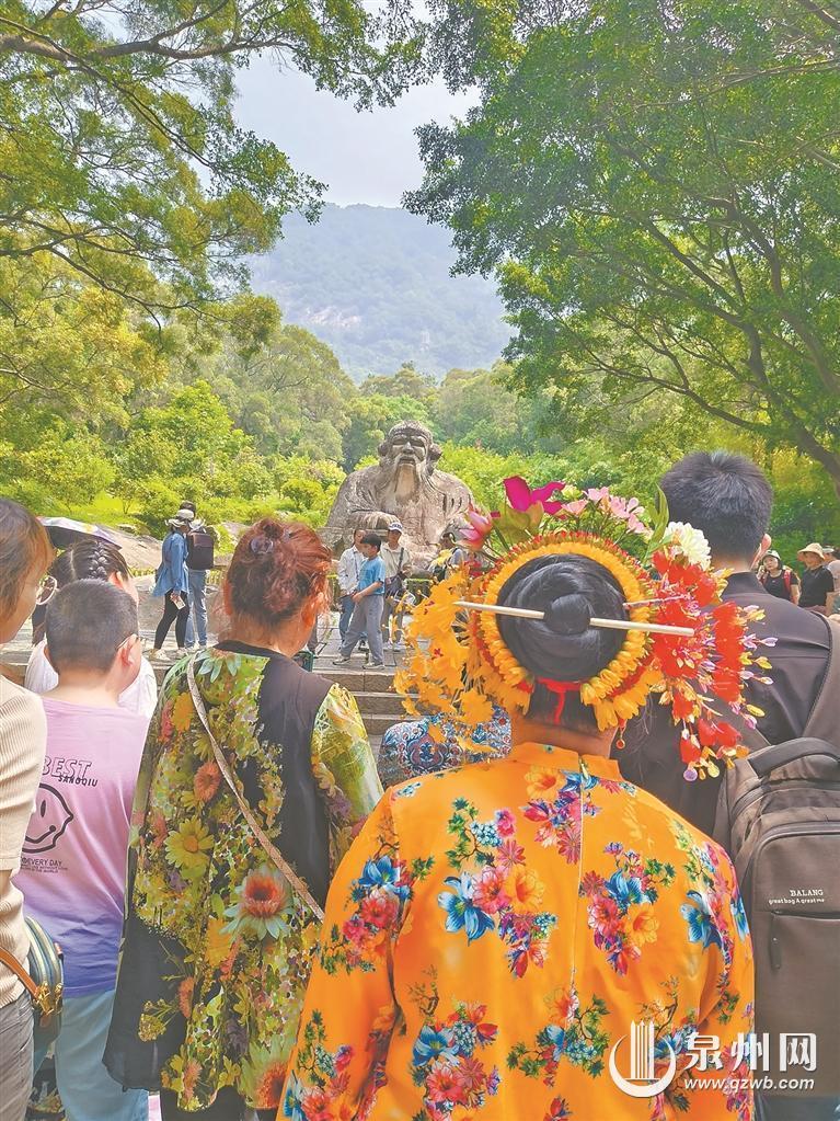 “今生戴花,来世漂亮”。一顶娇艳美丽的“流动花园”,2023年以来盘上赵丽颖、毛晓彤、王冰冰、黄圣依、胡杏儿、赵雅芝、沈梦辰、陈都灵、陈意涵、周雨彤、温峥嵘等明星和泉籍亚运冠军、众多“网红”的头顶,也盘在泉州街头来自全国各地男女老少的头上,成为“头上顶流”。