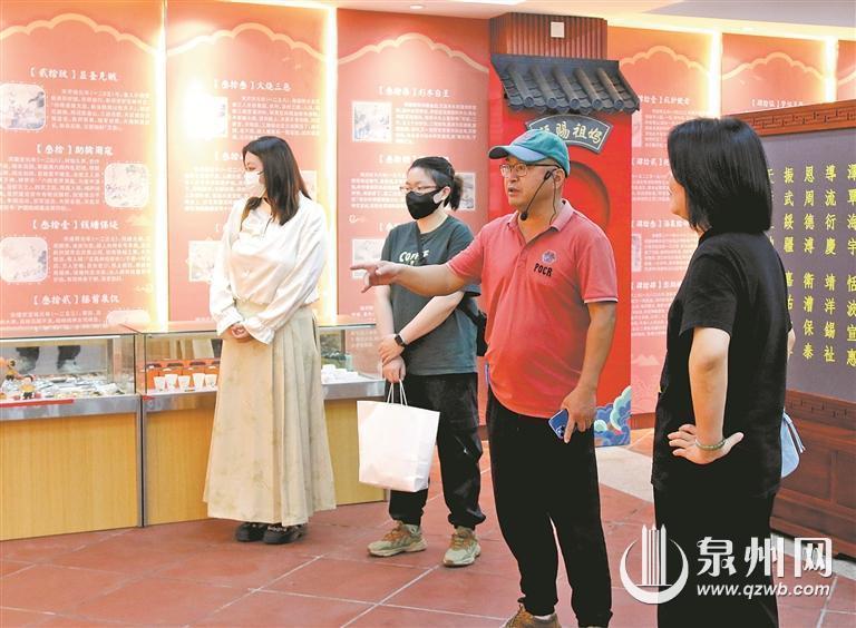 泉州网5月5日讯 (记者黄墩良 陈明华 文/图)“蟳埔女头饰,有‘头上花园’的美誉……蟳埔是‘海上丝绸之路’起点古泉州港的重要港口……”昨日上午,在泉州顺济宫妈祖蟳埔文化馆内,黄坤水带着扩音器,讲解着蟳埔的历史、簪花围、民俗习俗、蚵壳厝等,游客们听得津津有味。
