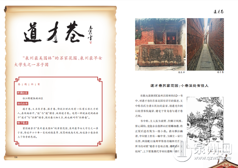 老泉州在巷子里。2018年,泉州晚报社泉州网与泉州文旅集团联合推出《巷遇:老泉州在巷子里》系列报道,以新闻报道的真实性为原则,通过实地踏勘、口述历史,用文字、图片、视频发掘泉州古街巷故事,并结合史料论证,从公众史学维度还原出丰满的泉州古巷历史。
