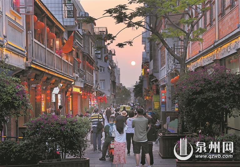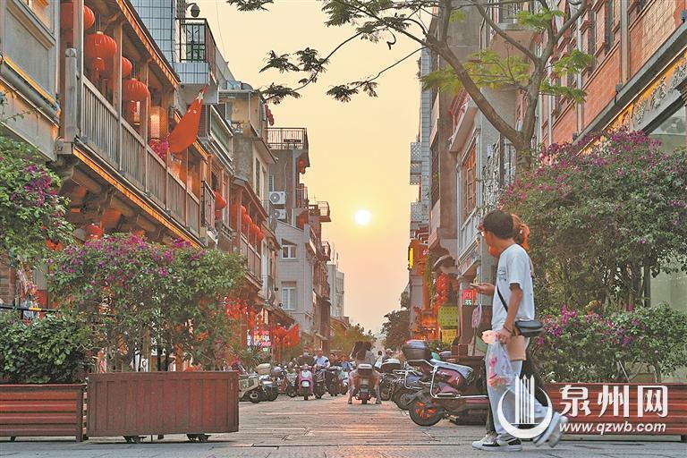 5月6日傍晚,在泉州古城中山路花巷口,夕阳余晖洒在古朴的闽南老街上,不少行人停下脚步,拿起手机记录下这油画般的美景。花巷落日已成古城新网红打卡地,你去打卡了吗?(融媒体记者王柏峰 摄影报道)
