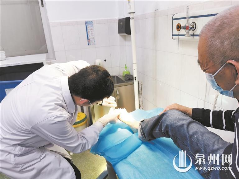 原来,3月23日晚上10点,孙女士的父亲右脚小拇指指甲处不慎磕破出血。父亲患有糖尿病,如果旅程中脚伤难以愈合可能引发感染。她有些担心,便决定带他前往泉州市第一医院治疗。到达医院急诊科后,接诊的陈河彬医生检查后,给老人注射了破伤风针,后又给伤口消毒、上药、包扎等,同时叮嘱老人治疗后相关注意事项。