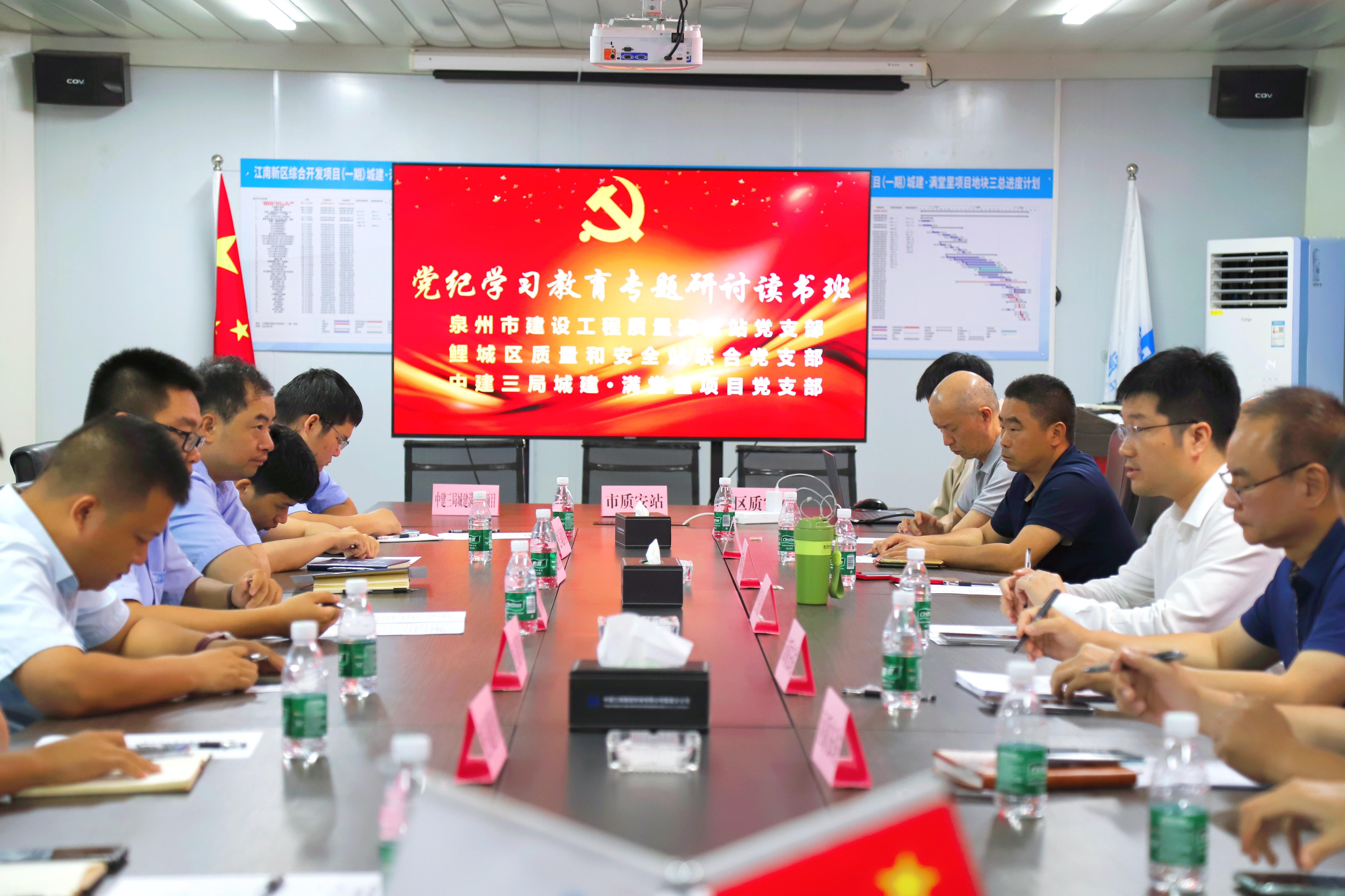 5月11日,泉州市建设工程质量安全站党支部、鲤城区质量和安全站联合党支部、中建三局城建·满堂里项目党支部三方共同签订党建结对共建协议,举办党纪学习教育专题研讨读书班,希望以结对共建强化党建引领、以党纪学习深化务实笃行,共同提升工程项目建设水平,推动培育建筑行业新质生产力,助力泉州高质量发展。