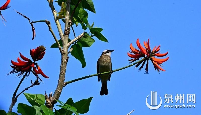 刺桐花开引来候鸟白头鹎 林世朗/摄