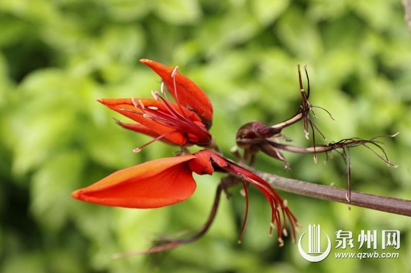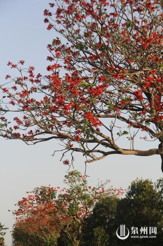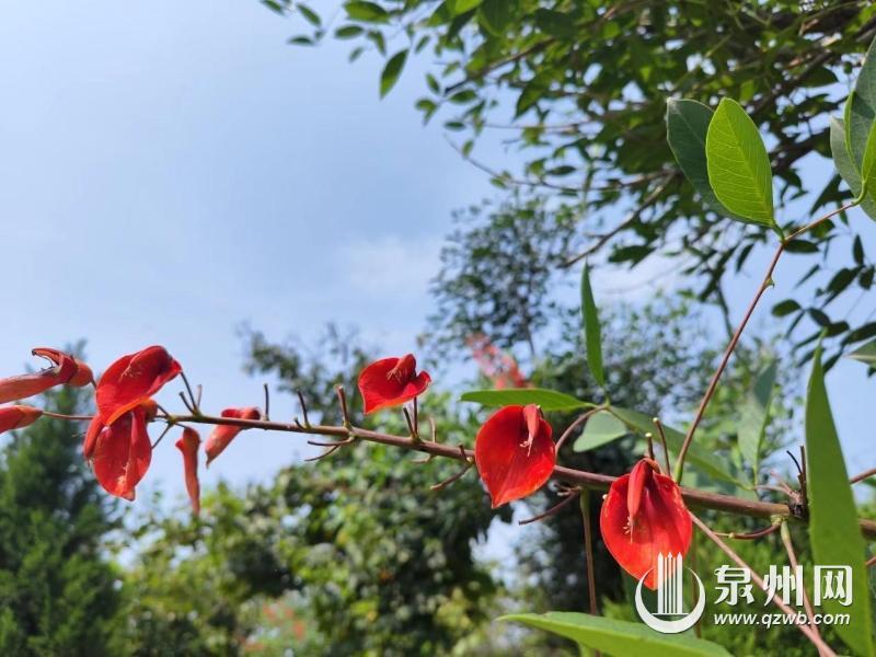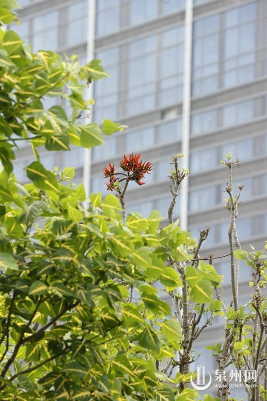 5月,初夏,泉州市区丰海路、滨海公园等地,鸡冠刺桐开得热烈。