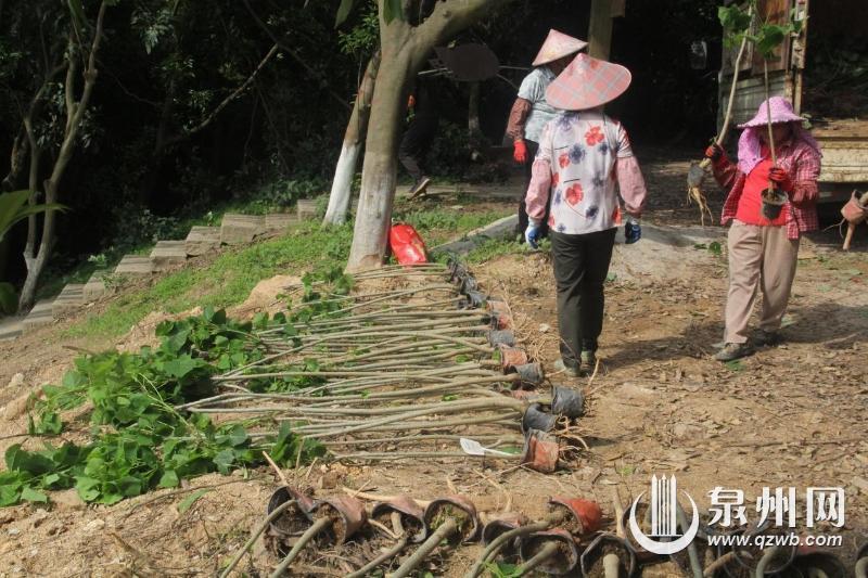 “这些树苗很宝贵的。”5月8日,泉州市林业技术推广中心主任陈金章也加入种树队伍之中,为定植好的刺桐苗修剪枝叶,如同在照顾一个孩子。该园后续还将陆续增加其他品种刺桐,将成为全国刺桐品种最多的专类园。