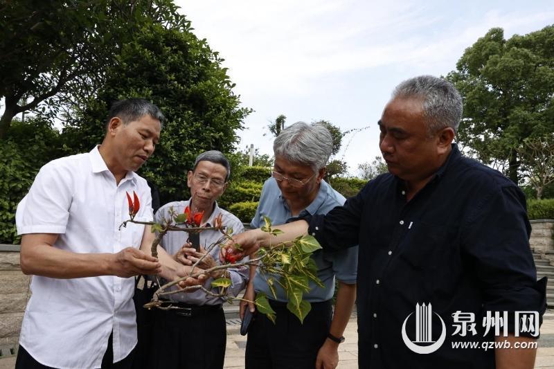 “刺桐一直在泉州人的身边,但是,人们常说的能够代表泉州的刺桐,是哪个品种呢?我们推测,刺桐(本种)也许是人们常说的泉州刺桐,在搜集种质种源过程中,暂时还未在国内其他地方发现这个品种。”陈金章说道,刺桐属有100多个品种,其关系通俗来说,如鸡冠刺桐与象牙刺桐是同属兄弟,金脉刺桐与刺桐(本种)是同种兄弟。2022年,经市政府同意,依托泉州市林业技术推广中心,联合华侨大学、福建省林科院等高校、科研院所,组建了多部门协同协作的科研团队。市林业局负责人带领科研团队,深入南安、惠安、永春、安溪等地调查、走访,查阅相关资料,开展刺桐古树信息收集工作,了解刺桐在泉州市的种植历史、分布区域等情况。