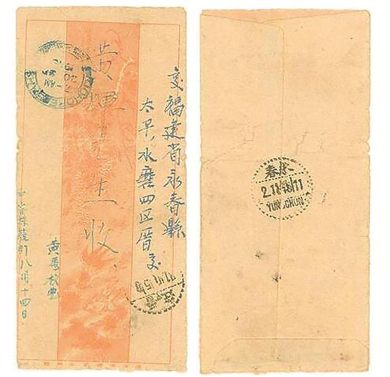1945年9月19日,马来亚华侨黄秀权在寄致永春“三淑母”的侨批中称:“请您勿念。现日本失败投降,重见天日了。国治在这里很好,请您在和平时勿来南洋,不久船轮通行,我母与国治要回祖国。”从信中不难看出,抗战胜利后华人华侨满心欢喜,想尽快返乡探视国内亲属。