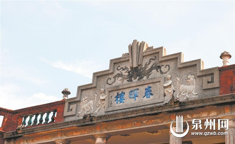 楼顶山花正中嵌有书法家曾遒题写的“春晖楼”三字
