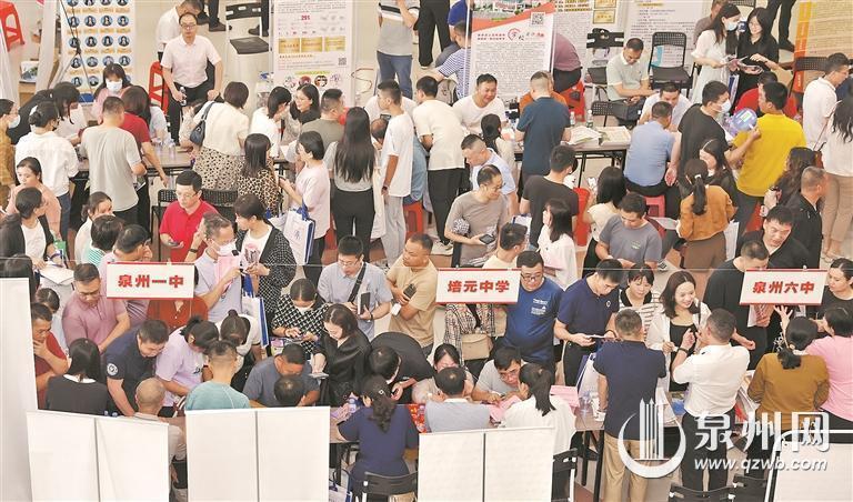 昨日上午8时30分,咨询现场已是人潮涌动,各个学校的展位前挤满了考生和家长,招生负责老师专心为考生、家长解答。“参照市二检分数,孩子有没有希望上一级达标高中?”“‘小升初’填报志愿时,该注意什么?”“入校后,是走读好还是寄宿好?”……然阴雨绵绵,但挡不住广大学生和家长的热情,现场咨询的人络绎不绝,将各中学、职校的咨询展位围了里三层外三层。泉州市、鲤城区、丰泽区、洛江区教育局有关领导及相关科室负责人以及近40所中学、职校的校长现场坐镇,耐心解答考生和家长们的疑问。各校各显神通,从“办学成果”“招生计划”“升学情况”,到“吃得好不好”“教室有没有空调”“能不能住宿”等方面,全面展示学校办学优势。考生和家长纷纷表示收获满满、不虚此行!