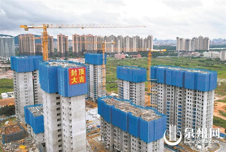 泉州网5月31日讯(融媒体记者张素萍 通讯员黄凯杰 文/图)安商房建设是关系群众福祉的民心工程。日前,位于鲤城区江南新区的重点安商房项目——城建·满堂里项目迎来新进展,首栋住宅楼顺利封顶,比计划工期提前55天。