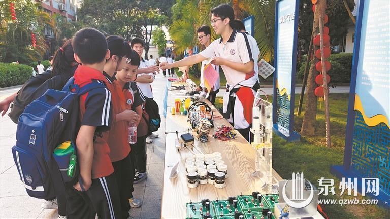 活动当天,福建师范大学泉州附属中学结合“多彩社团齐绽放 五育并举促成长”为主题的科技节活动,通过科普展演、讲座等形式,面向广大中小学生开展首届“鲤美杯”科幻画展、研究性学习成果展、科技创新成果展、多彩社团大闯关、红十字会生命体验、鲤城区安全示范文化馆体验等区域活动,在青少年心中播下科创的种子,引导他们立志科技报国,奔赴科技创新的星辰大海。