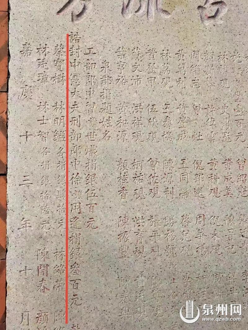 清嘉庆十三年(1808),徐用逢捐资修建晋江五里桥的纪念石碑。