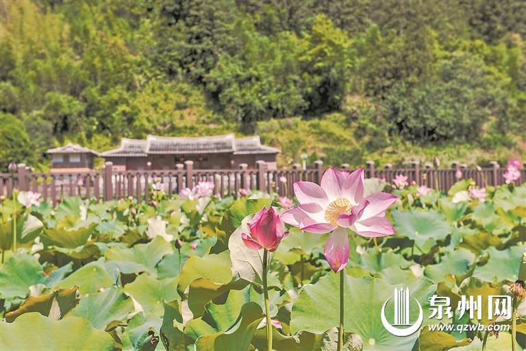 泉州网6月7日讯(融媒体记者颜雅婷 通讯员吴有森 范福海 文/图)眼下,德化县葛坑镇龙塔畲族村荷龟(鱼)园里,一株株荷花亭亭玉立、含苞待放,微风徐来、清香袭人。
