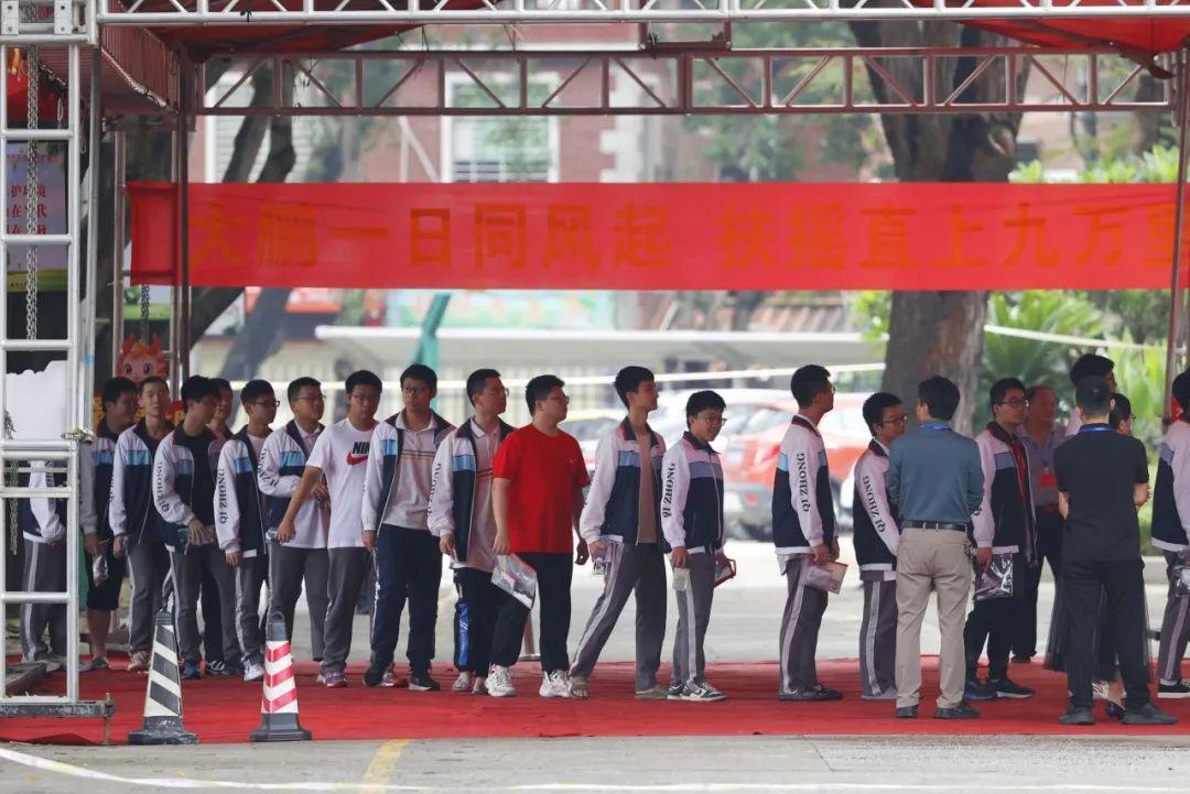 早上8时30分,考生陆续有序进入考场,泉州一中老师与考生们一一击掌打气,目送考生进考场。