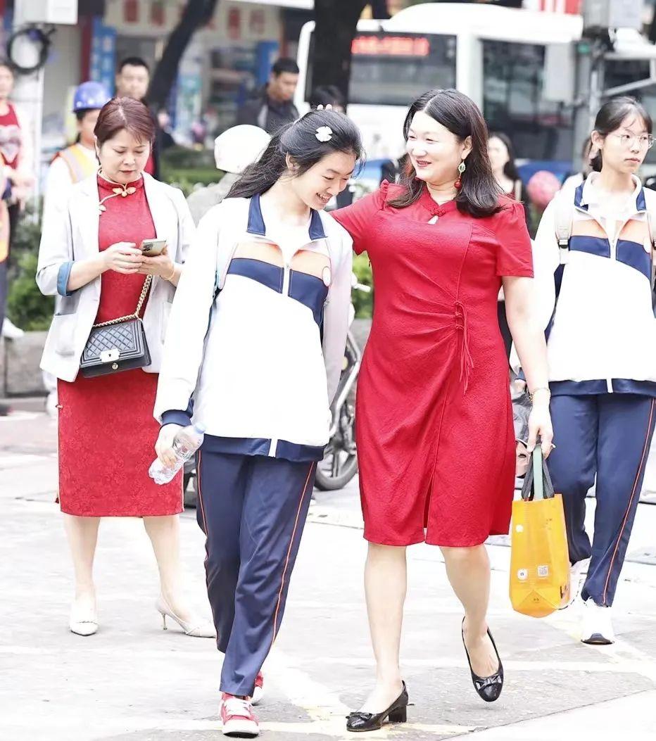 上午8时许,在泉州五中(城东校区)考点前,四位身穿旗袍的家长为所有考生加油,“祝所有考生金榜题名,旗开得胜。”