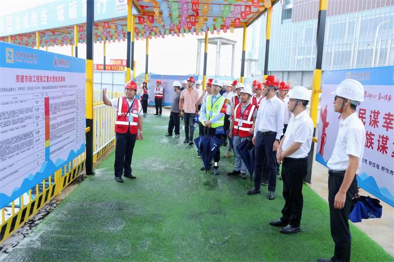 紧接着,与会嘉宾在工作人员的引导和讲解下,走进海丝金融中心项目进行观摩。项目现场设置了钢构安装安全防护标准、全员安全生产责任制、安全标准化应用、液压爬模系统和智慧工地应用等多个板块,全方位展现了海丝金融中心项目在建筑施工安全生产标准化、绿色文明施工、智慧工地管理方面的亮点做法。据统计,全市相关建筑企业陆续组织行业人员近600人观摩了智慧工地。