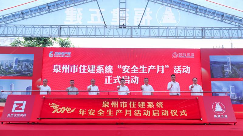 6月6日,由泉州市住建局主办、福建五建集团承办的泉州市住建系统2024年度“安全生产月”活动启动仪式暨“智能建造,发展新质生产力”智慧工地现场观摩会在福建五建集团承建的海丝金融中心项目成功举办。泉州市县两级住建部门分管领导、相关科(股)室及质量安全监督机构负责人,市质安协会、部分龙头建筑企业和标杆项目代表等约200人参加。泉州市住建局总工程师郭文森、市地震局副局长叶威、泉州发展集团董事林丁富等领导参加活动。